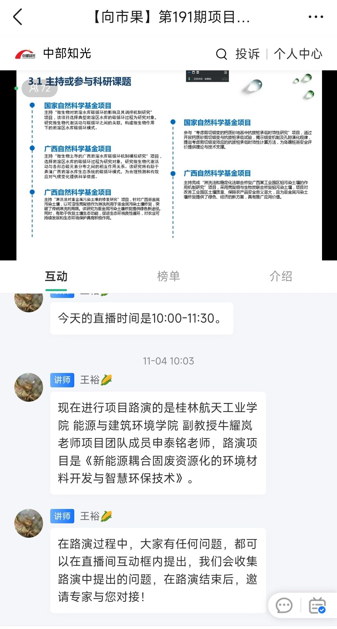 为积极推动我校科技成果转化,服务国家“双碳”战略与地方产业绿色升级,11月4日上午,由我校联合能源产业绿色转型关键技术广西高校工程研究中心、国家知识产权运营(武汉)高校服务平台、潜江市市场监督管理局等单位共同主办的“第191期项目路演-桂林航天工业学院新能源技术专场”通过线上直播形式举办。